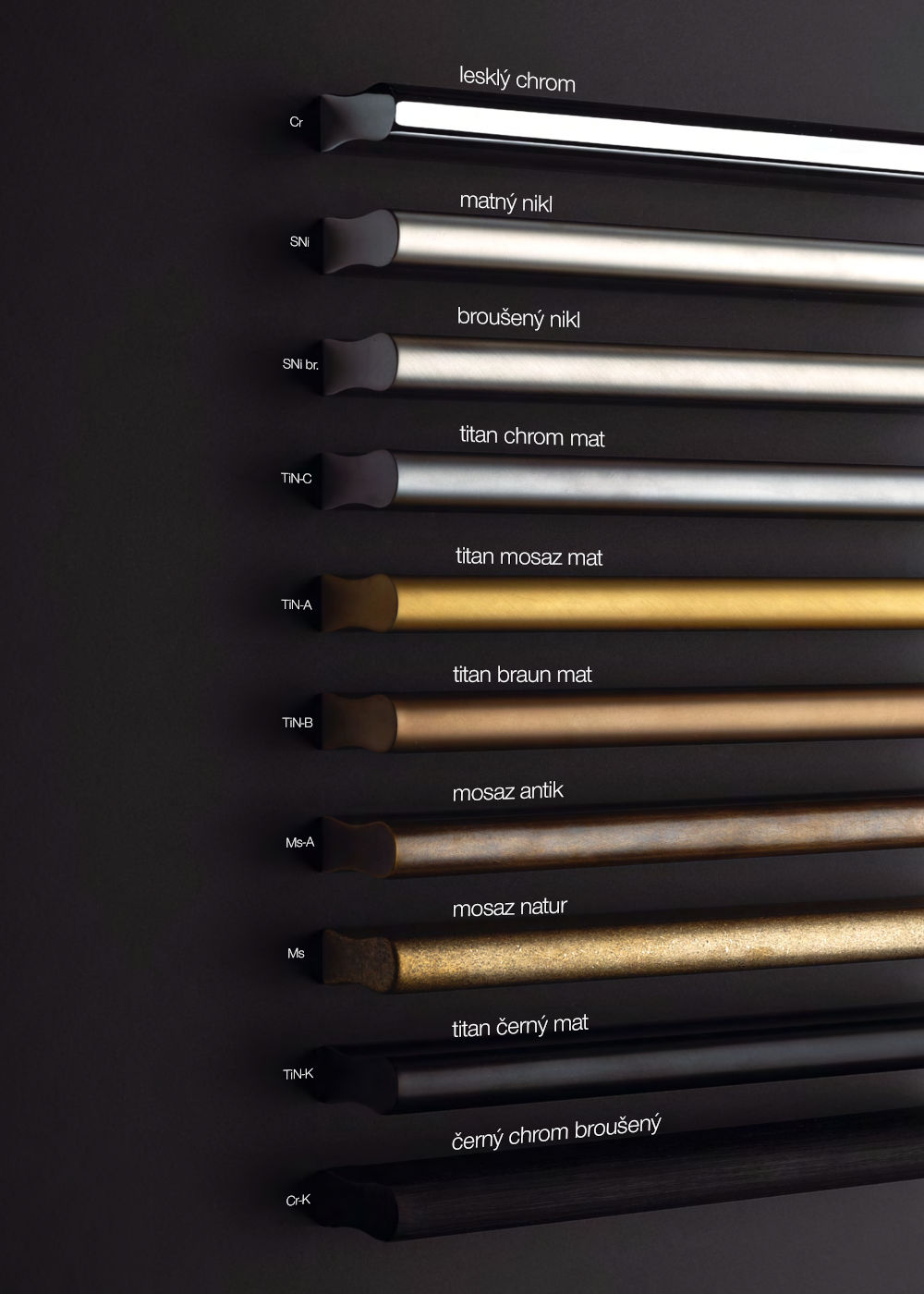 Po více jak 20-ti letech výzkumu, vývoje a mnoha set tisíců vyrobených kusů se považujeme za lídry v povrchových úpravách. Dokážeme Vám na našich výrobcích nabídnout škálu kovových odstínů, které budou dotvářet důležité detaily Vašich realizací. Od různých variant naturální mosazi až po speciální titanové povrchy v matných tmavých odstínech. Na ovládací madla